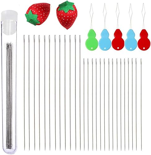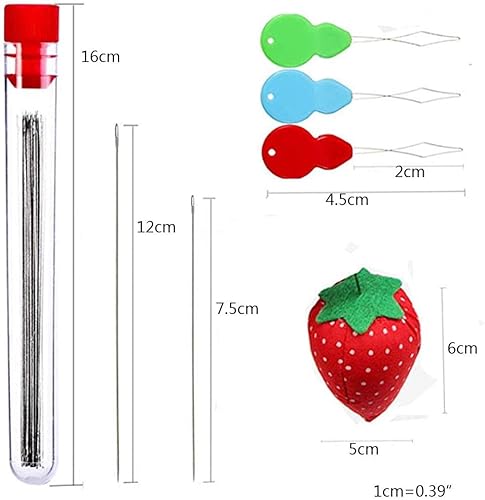 Lot de 47 aiguilles extra fines et droites pour fabrication de bijoux avec enfile-aiguilles et coussin pour épingles à coudre