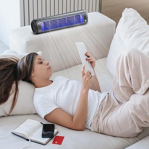 Kouamor Ventilateur tour rechargeable par USB - Ventilateur tour silencieux avec 3 vitesses - Batterie 2000 mAh - Silencieux et portable - Pour bureau, chambre à coucher et salle de bain - Blanc