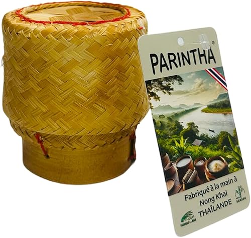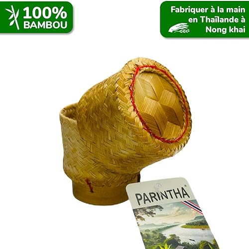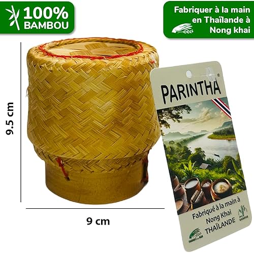 Petit Panier pour riz gluant thaïlandais traditionnel en bambou de 9 cm – pour transporter, présenter en portion individuelle le riz collant (Bamboo Sticky Rice)