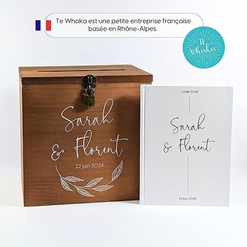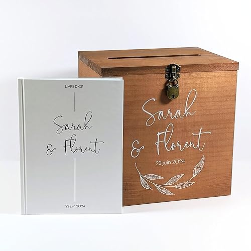 Livre d'or Mariage + Grande urne personnalisée en Bois avec Cadenas | 25 x 25 x 20 CM | Duo Livre d'or personnalisé Mariage et Son urne personnalisée