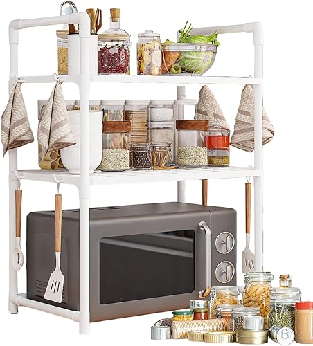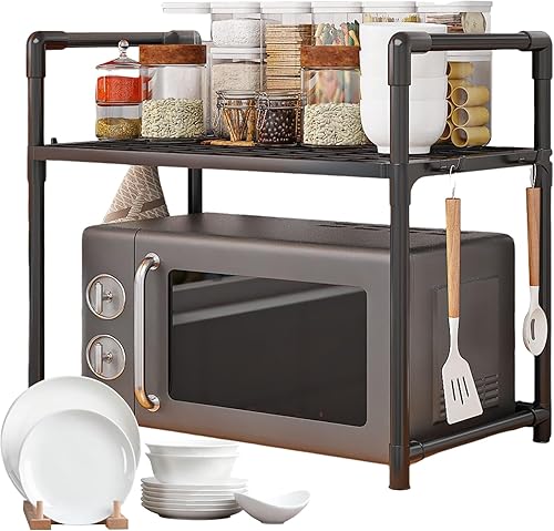 Dreuhuing Étagère extensible à 2/3 niveaux pour four à micro-ondes, support de four à micro-ondes avec crochets, support d'étagère de comptoir de cuisine, support de rangement pour four à micro-ondes,