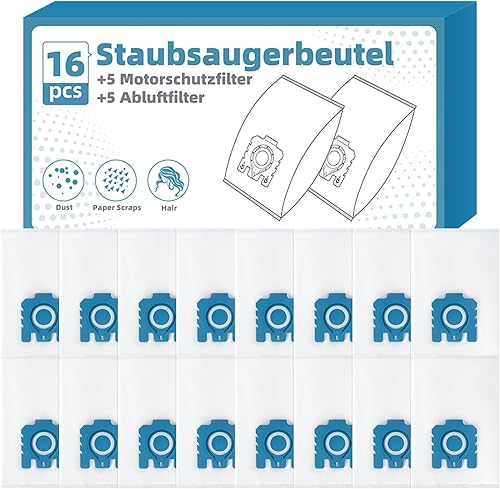Lot de 16 sacs d'aspirateur pour Miele Hyclean Gn [Classic C1 Complete C2 Complete C3, S2 S4 S5 S6 S8] avec 5 moteurs et 5 filtres d'échappement, remplace 9917730 12281680