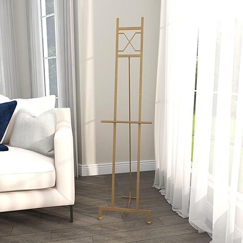 Deco 79 Grand présentoir réglable sur pied en métal, chevalet à 3 niveaux avec support de chaîne, 40,6 x 48,3 x 144,2 cm, doré