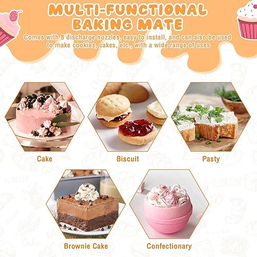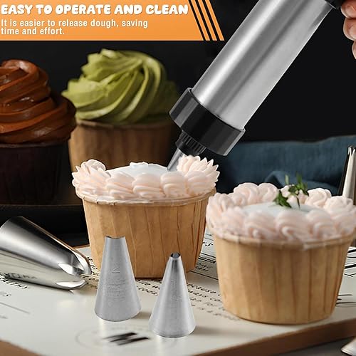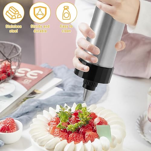 Machine À Churro, Machine À Churro Manuelle, Kit De Pistolet À Churros En Acier Inoxydable 304, Machine À Churros Creuse avec 8 Becs De Plastification pour Desserts,Gâteaux, Machine À Biscuits