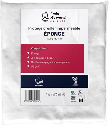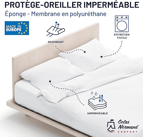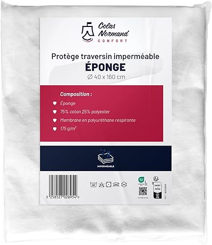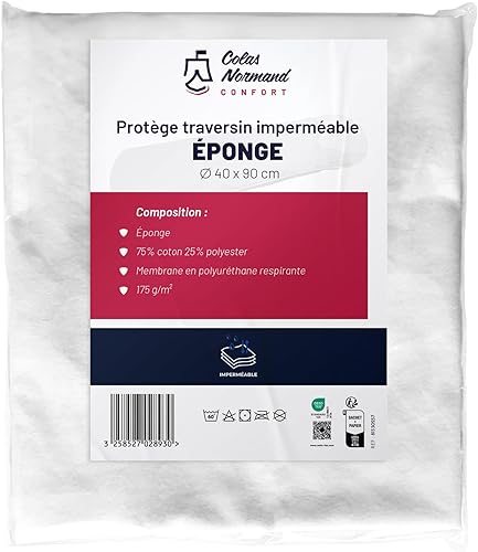 Colas Normand - Protège-Traversin 90x40 cm - Éponge 75% Coton & 25% Polyester - Imperméable & Respirant - Oeko-Tex - Fabriqué en Europe
