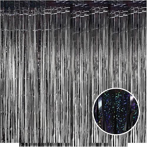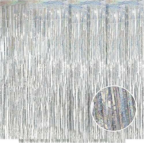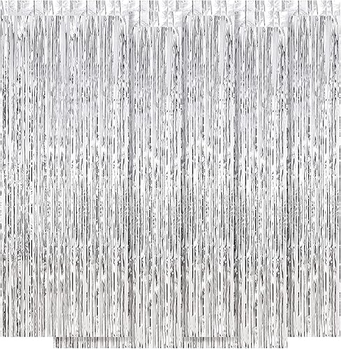 Lot de 5 rideaux en aluminium blanc métallisé - 1 x 2,5 m - Pour anniversaire, fête, fiançailles, mariage, Noël, Nouvel An - Décoration (blanc)
