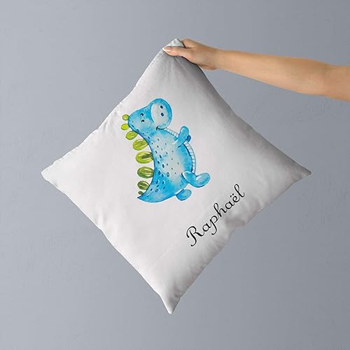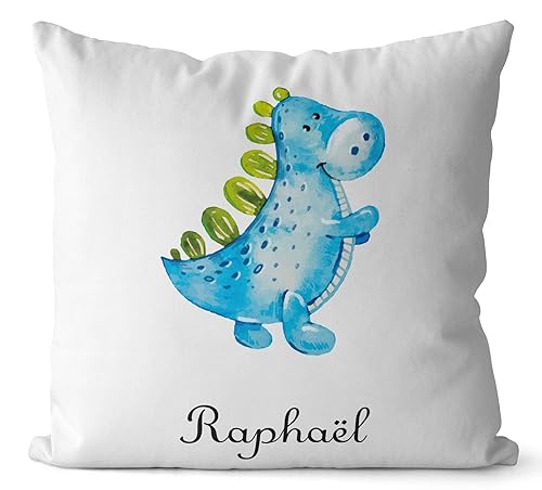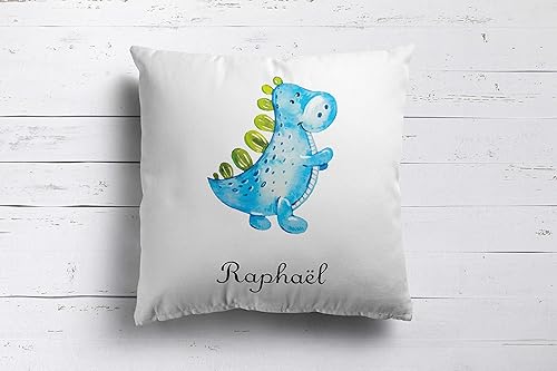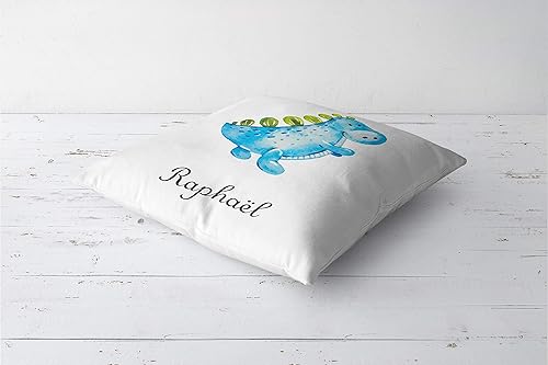 SB46B Coussin Dinosaure Bleu personnalisé prénom, coussin sieste, coussin maternelle, coussin enfant, oreiller sieste, oreiller maternelle, déco, oreiller prénom, cadeau coussin prénom