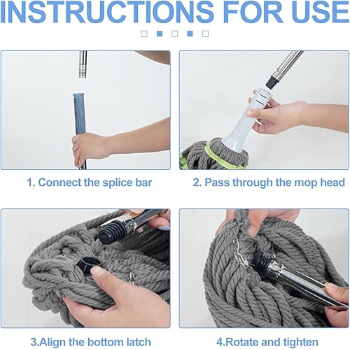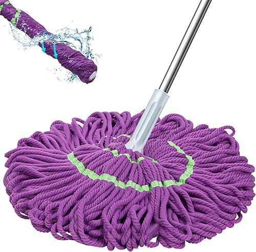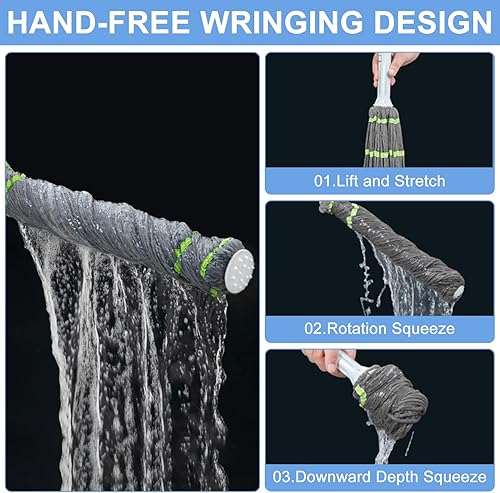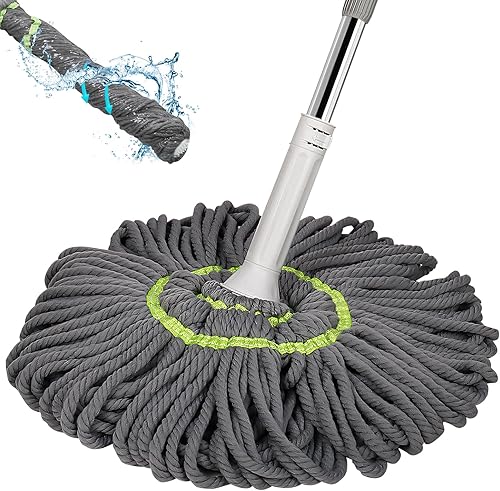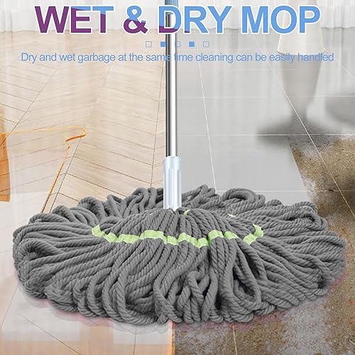 Serpillère auto-essorante en microfibre avec manche de 147 cm de long, serpillère avec fonction d'essorage, serpillère Wet & Dry avec manche télescopique pour tous les sols, gris