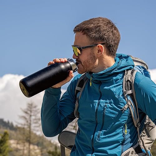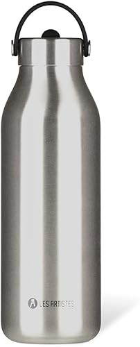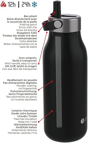 LES ARTISTES Paris A-2397 Bottle'Up 2.0, Thermos 1,5 litre, Gourde isotherme sans BPA, Réutilisable, Garde au chaud 12h et au froid 24h, Poignée, Acier Inoxydable, Design Black Pearl
