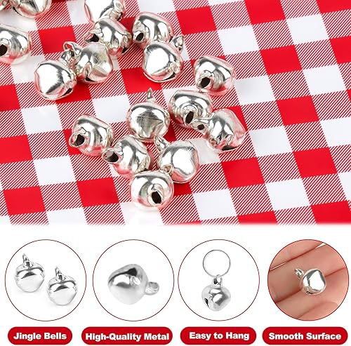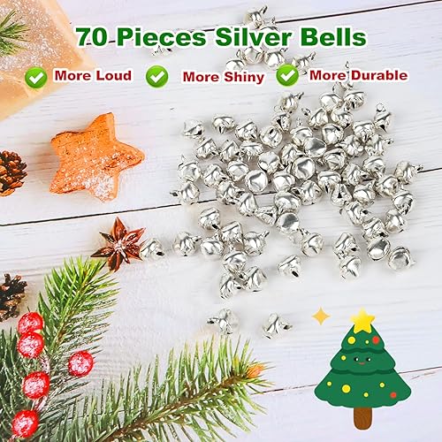 UKOFEW 70 Pièces Clochette Grelot,12mm Grelots en Métal,Mini Clochettes pour la Décoration Noël Maison Fête Bricolage Jingle Bells, Accessoires de Bijoux à Bricoler (Argent)