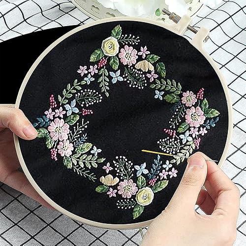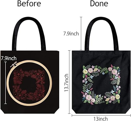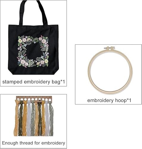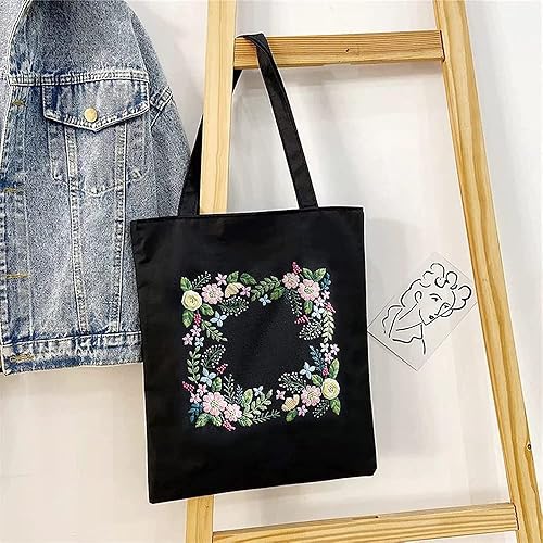 Sac de transport en toile - Kit de broderie au point de croix - Avec motif de cactus et fleur - Kits de démarrage avec sac à broderie, cerceaux de broderie, fils de couleur