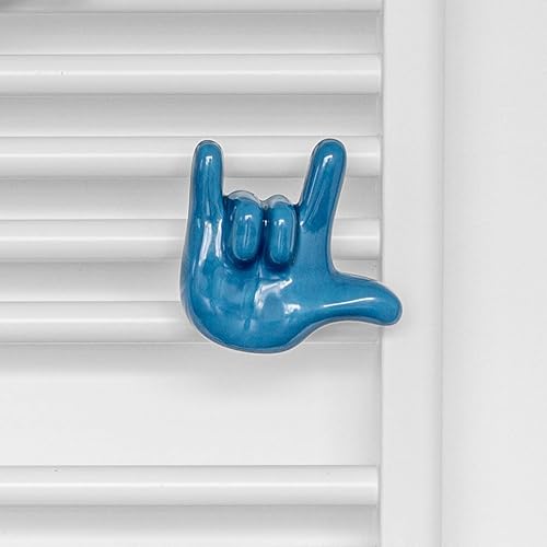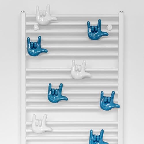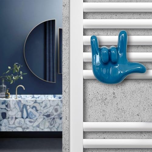 Letshelter | Patère Bleu en céramique en Forme de Signe I Love You pour radiateurs sèche-serviettess, fabriquée artisanalement en Italie - Se Fixe Directement sur Le radiateur sèche-Serviettes