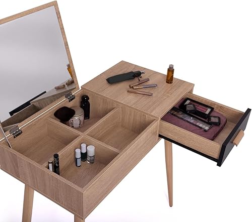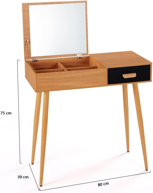 IDMarket - Coiffeuse scandinave Lisa Miroir Rabattable hêtre et Noir