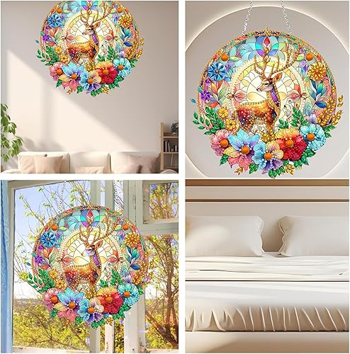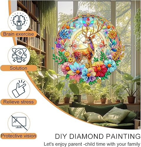 Aikeis Kit de guirlandes de peinture diamant à faire soi-même, pendentif en strass, pendentif de fenêtre d'art diamant peint à la main, ensemble de tentures murales de jardin d'intérieur à la mode