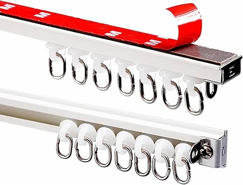 Rail De Rideau Auto-adhésif pour Plafond Et Mur, Pas De Perçage, Vis Ou Outils, Tringle De Rail De Rideau, Barre De Séparation pour Chambre, Douche, Placard Et Camping-Car