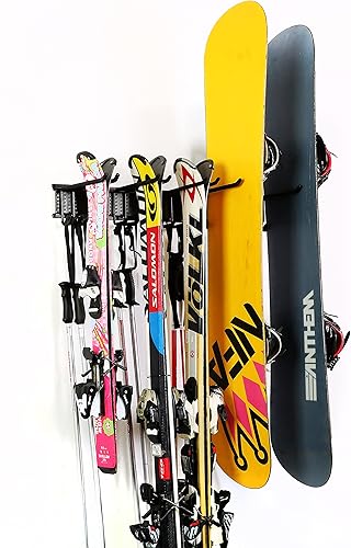 Ultrawall - Support mural pour skis, snowboards, avec 5 paires de crochets, fixation murale - pour la maison et le garage - support de rangement de ski pouvant supporter jusqu'à 136 kg