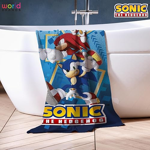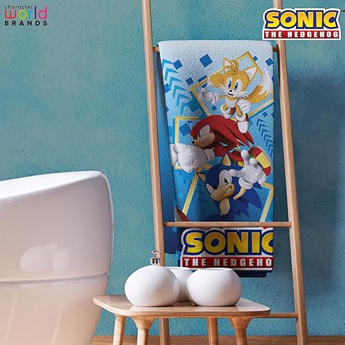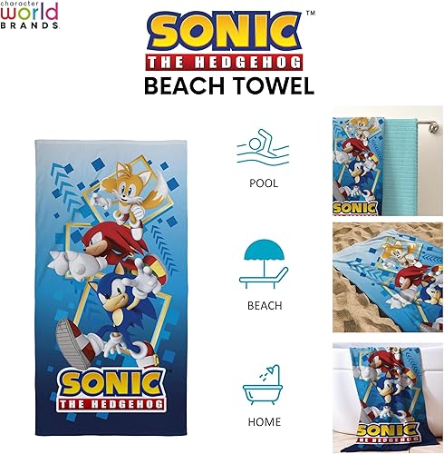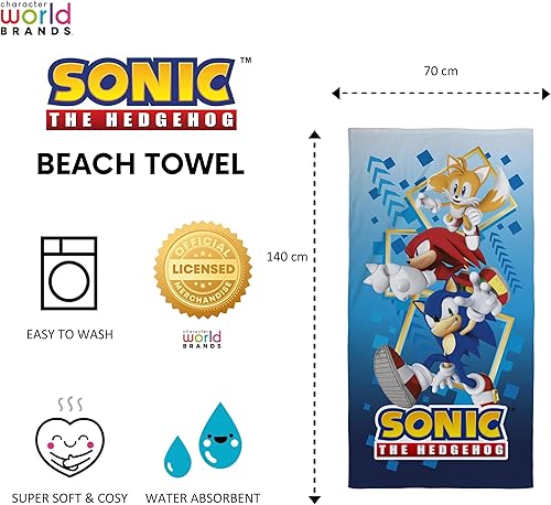 Character World Serviette officielle Sonic le hérisson pour enfants | Toucher super doux, design rebondissant | Parfait pour la maison, le bain, la plage et la piscine | Taille unique 70 cm x 140 cm |