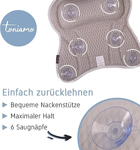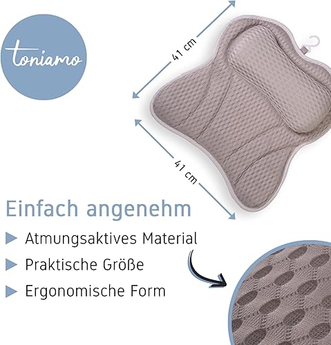 TONIAMO Coussin de Bain Toniamo | Oreiller de Bain Haut de Gamme pour Baignoire avec Appui-tête et Support de Cou | Oreiller idéal comme Oreiller de Nuque et Oreiller de Baignoire | Coussin de Bain e
