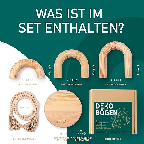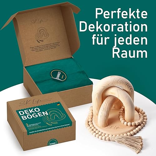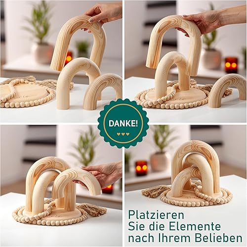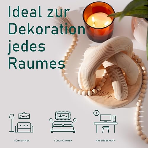 Lot de 5 décorations modernes en bois pour salon, style bohème, décoration d'étagères, table basse en bois naturel, guirlande de perles (147 cm) et dessous de verre, décoration d'intérieur de maison
