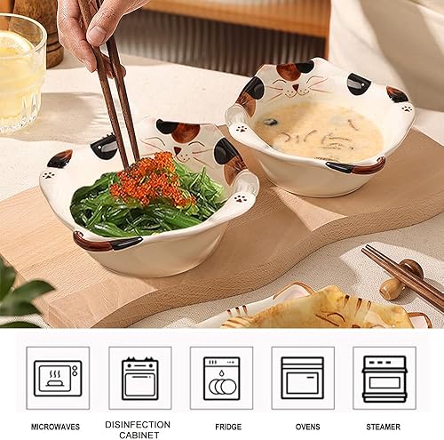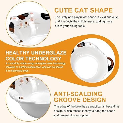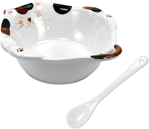GZCZCC Bol à Céréales Céramique Bols Petit Déjeuner Bol Petit Dejeuner Mignon Bols à Dessert Bol En Céramique Bol Mignon Chat Avec Un Scoop Pour Salade Riz Ramen