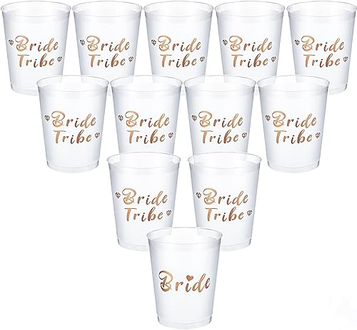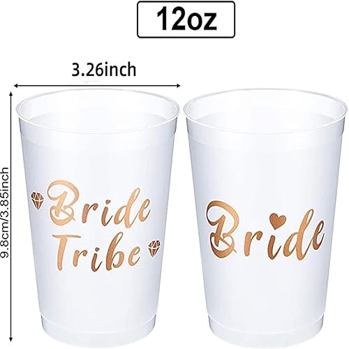 Boao 12 Pcs Coupes de Célibataire Team Bride Tasses avec Feuille d'Or Rose pour Mariage, Douche Nuptiale, Cadeau de Mariée et Décorations de Fête de Fiançailles (Blanc)