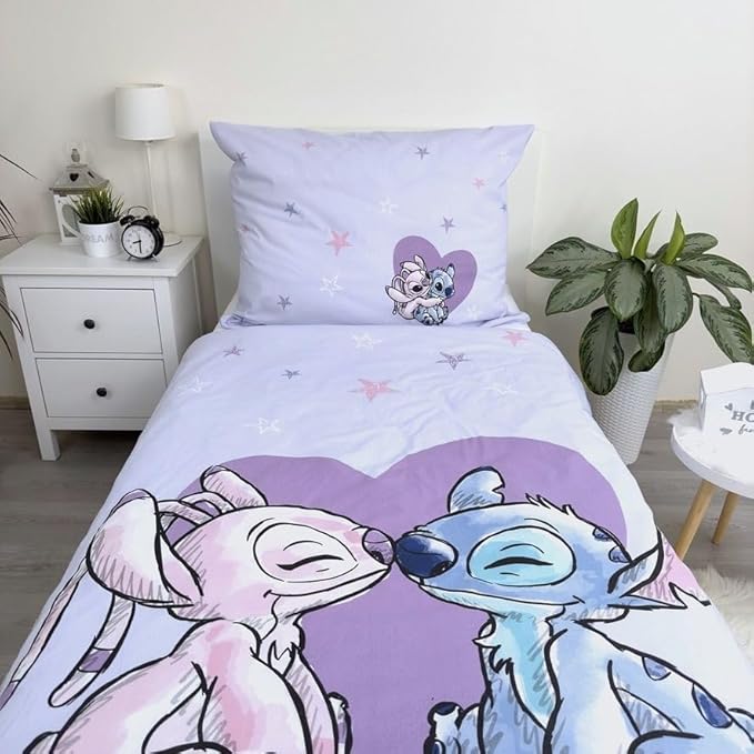Jerry Fabrics Stitch Lilo & Stitch Coeur Parure de lit réversible 140x200 cm avec taie d'oreiller 70x90 cm 100% Coton