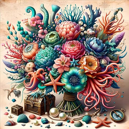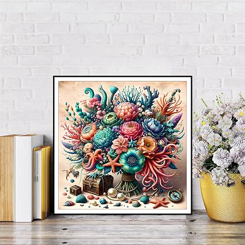 DOMROM Kit de peinture diamant 5D pour adultes - Corail - Kit de peinture diamant - Kit de peinture diamant numérique - Broderie pour décoration murale - 30 x 30 cm
