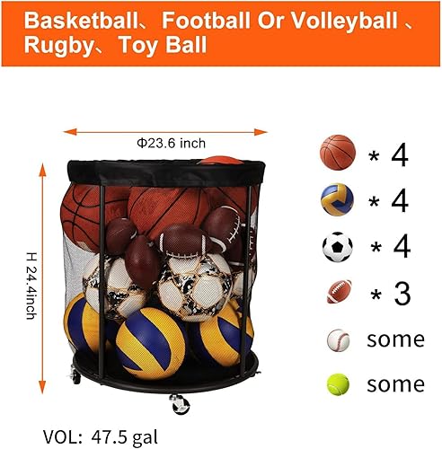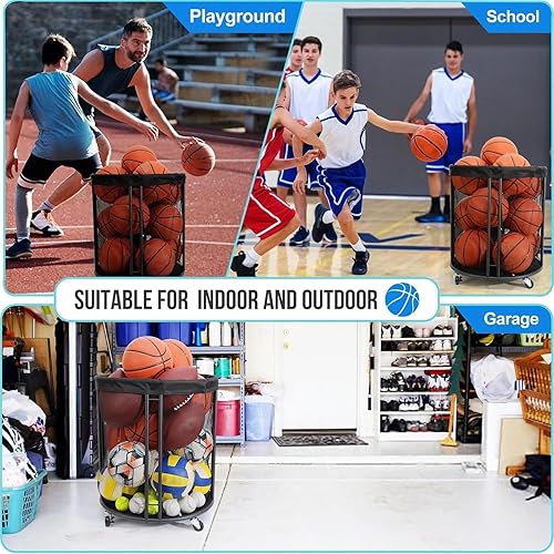 Bac de rangement pour ballons - Organisateur de ballons de sport de garage à roulettes, Chariot à ballons en filet pour intérieur et extérieur | Support à ballons de basket-ball, Panier de rangement p