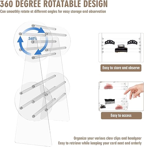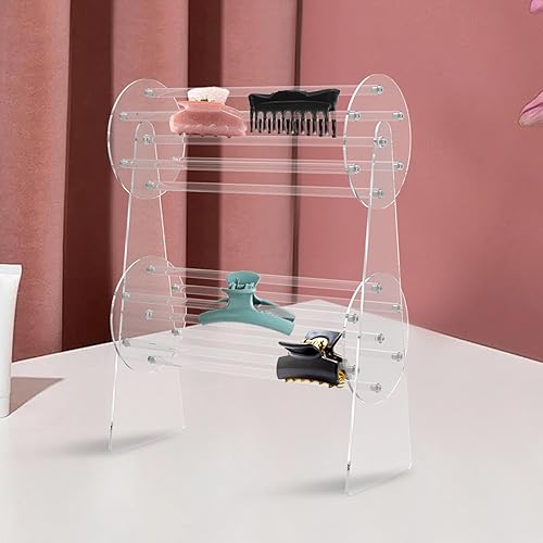 Support de bandeau à 2 niveaux en acrylique transparent pour accessoires pour cheveux, organisateur rotatif à 360°, organisateur de pinces à cheveux, présentoir transparent pour coiffeuse