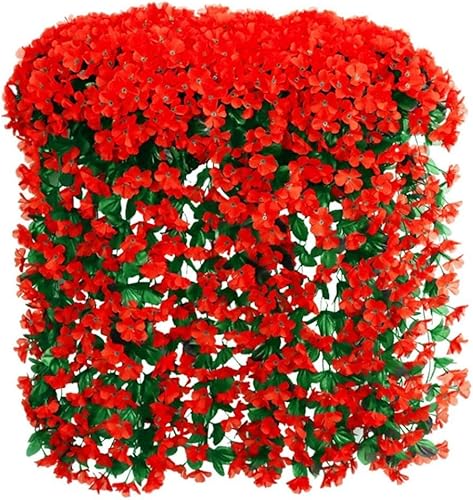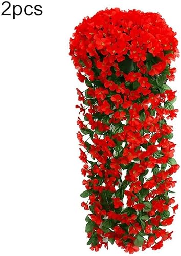 Lot de 2 guirlandes de glycines artificielles de 50 cm à suspendre au mur, pour fête de mariage, jardin, terrasse, décoration murale (rouge)