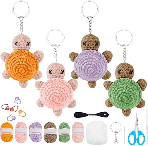 WEBEEDY 4 Ensemble de Crochet Kit de Crochet D'Animaux Facile DIY Kit de Tricot pour Débutants pour Adultes avec Tutoriels Vidéo Étape Par Étape et Fils Colorés Crochet Accessoires (Tortues de Mer)