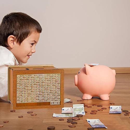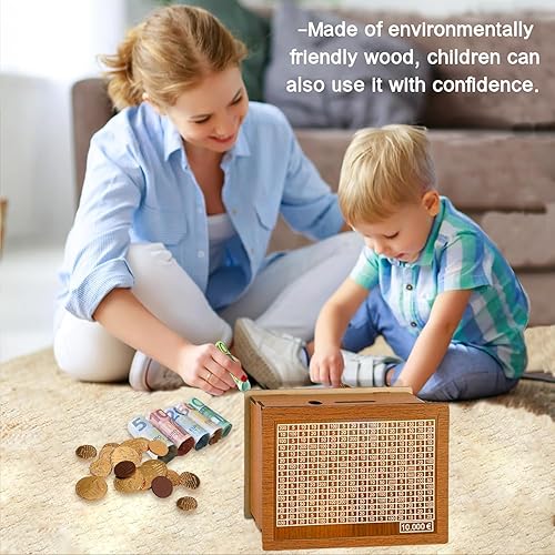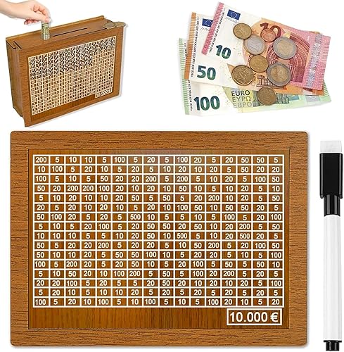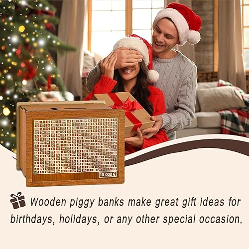 10000€ Tirelire en Bois,Tirelire avec Stylo EffaçAble et Compteur,Tirelire Bois avec Compteur,Tirelire Objectif avec Compteur pour Aider Les Enfants à Commencer à Economiser