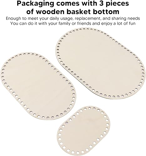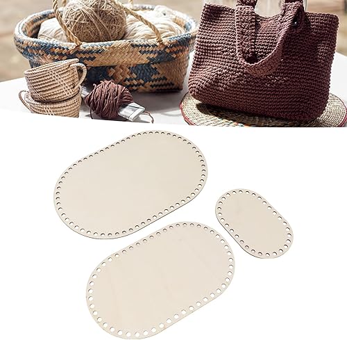 3 Pièces Fond de Panier en Bois Ovale Sac de Copeaux de Bois Fournitures Couvercle Puce Crochet Crochet Panier D'épicerie Sac à Main Baggie Ensachage pour Paniers D'affichage