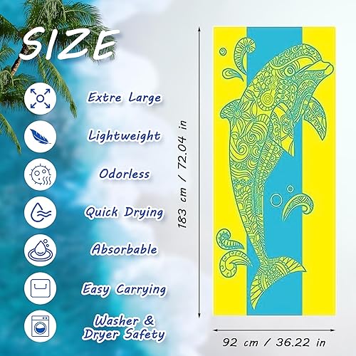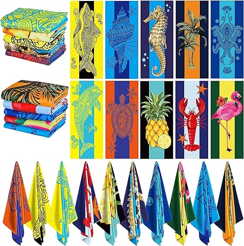Lot de 10 serviettes de plage surdimensionnées en microfibre à séchage rapide pour adultes, femmes, hommes, visage, mains, corps, voyage, piscine (couleur élégante, 90 x 180 cm, animaux de l'océan)