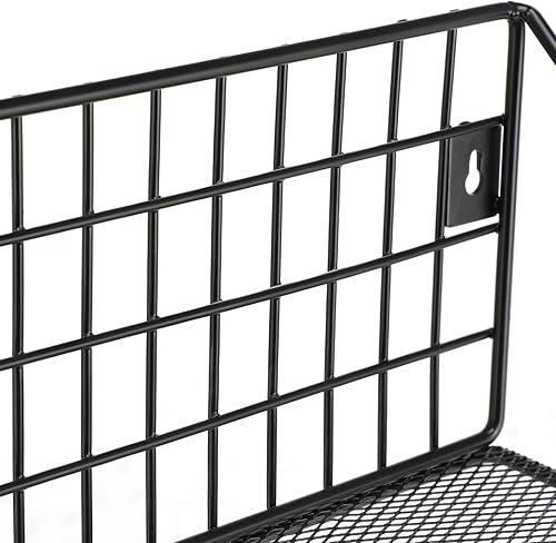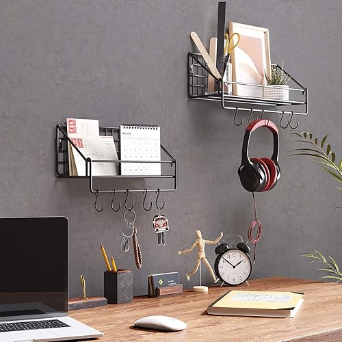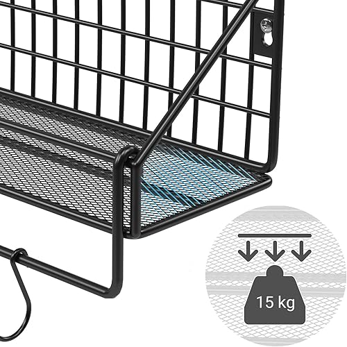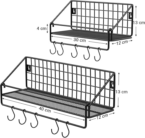 SONGMICS Étagères Murales Style Industriel, en Métal, Charge 15 kg/Étagère, Lot de 2, avec 10 Crochets, pour Chambre, Salon, Cuisine, 30 x 12 x 13 cm, 40 x 12 x 13 cm, Noir LFS02BK