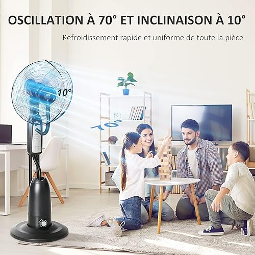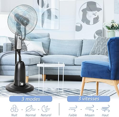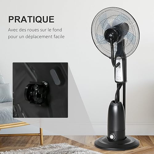 HOMCOM Ventilateur brumisateur sur roulettes 90 W télécommande - minuterie 3 modes 3 vitesses oscillant, inclinable silencieux - gris noir