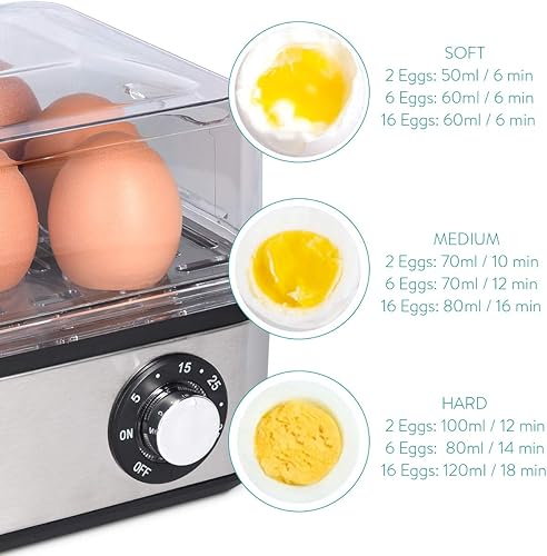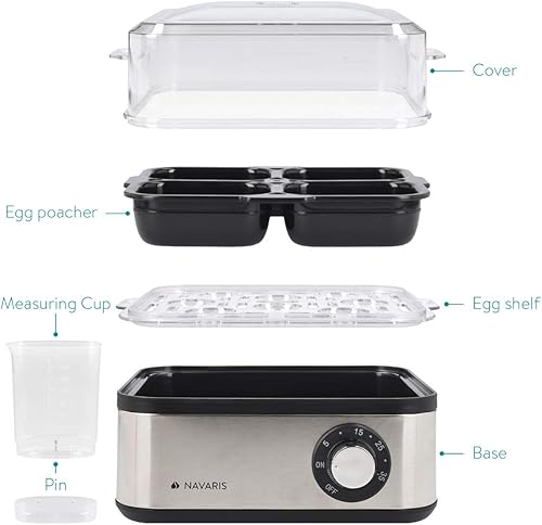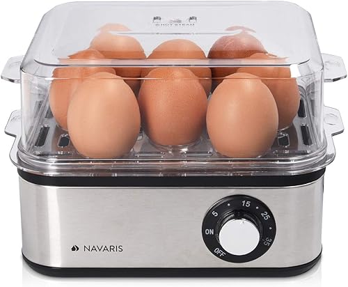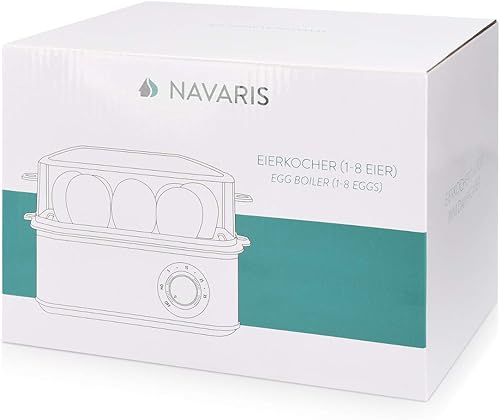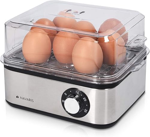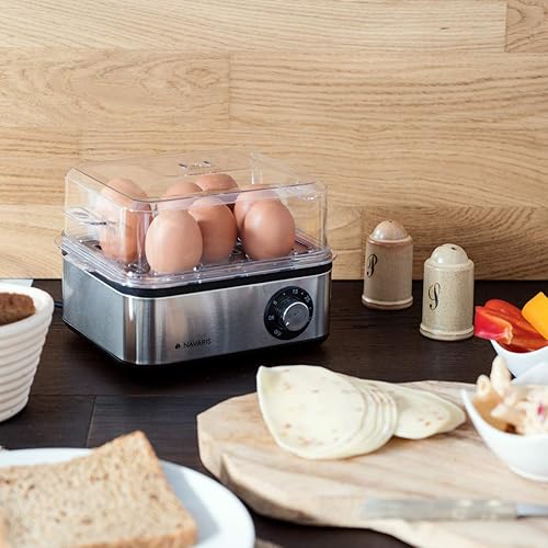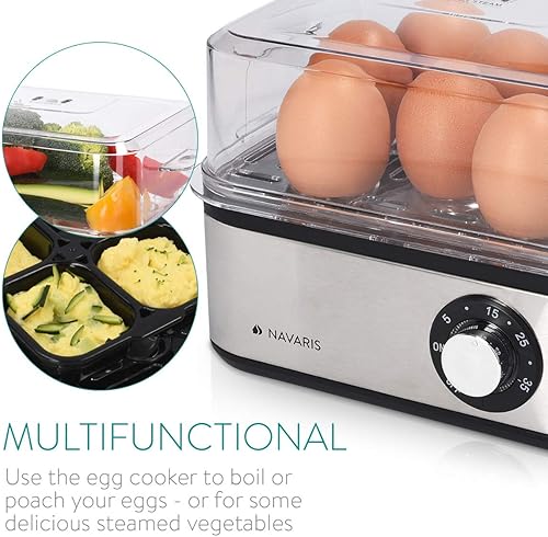 Navaris Cuiseur à Œufs Électrique INOX - Appareil pour 1 à 8 Œufs - Œuf Dur Mollet Poché ou à la Coque - Cuisson Vapeur Légumes Possible