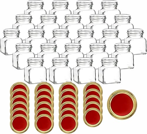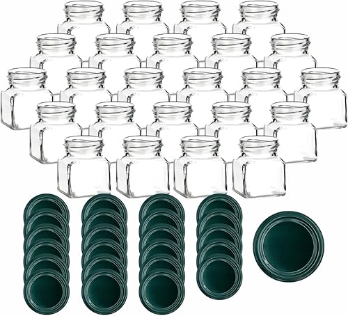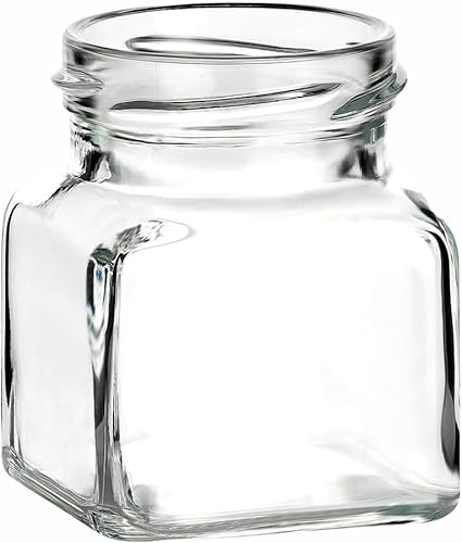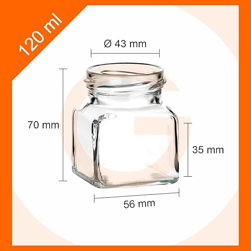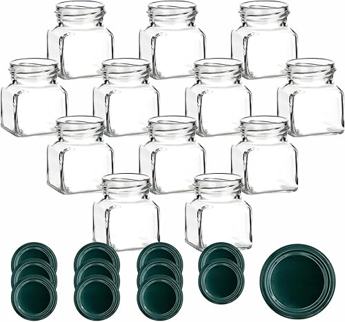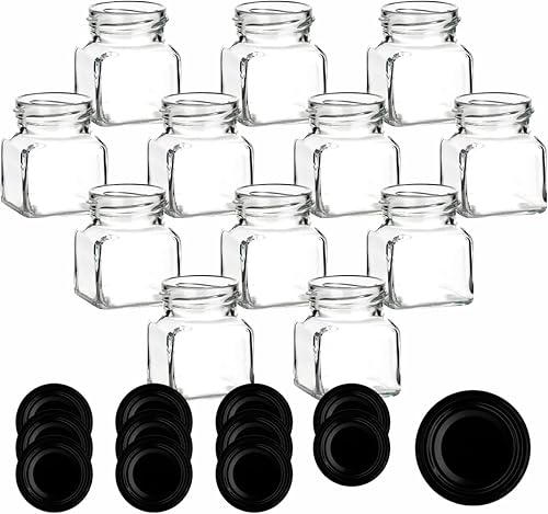 gouveo Lot de 12 bocaux de conservation 120 ml carrés avec couvercle à vis noir mat - petits pots de conservation avec bouchon à vis - pots de confiture vides, bocaux de conservation (EGE120SZ)