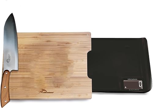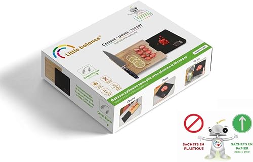 LITTLE BALANCE 8399 Chef 5 Trio USB - Balance de cuisine - Rechargeable USB - Balance 3 en 1 : Coupez, pesez, versez, tout en une seule balance de cuisine !! - 5kg / 1 g - Bambou véritable