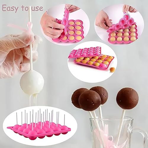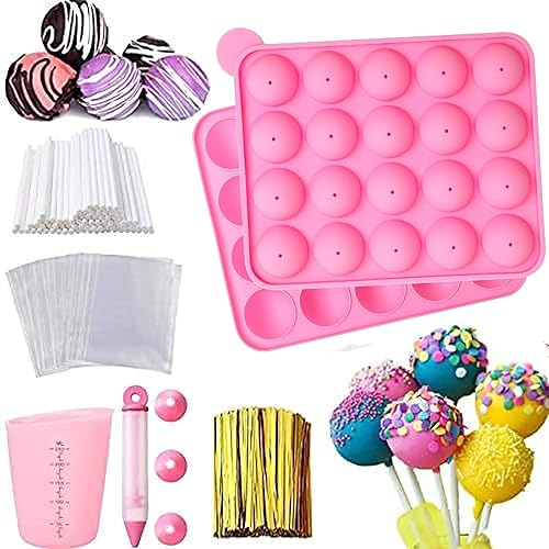 Générique Moule Pop Cake, Moules à cake pop en silicone sans BPA, Moules À Sucettes en Silicone, Pop Cake Kit avec 100 Baton Pop Cake, 100 Emballages De Bonbons Et 100 Attaches, pour Gâteaux