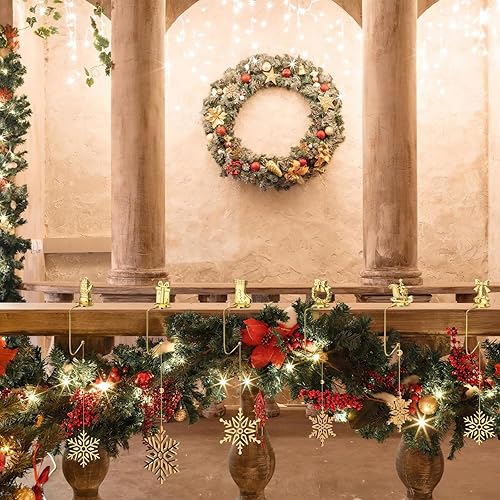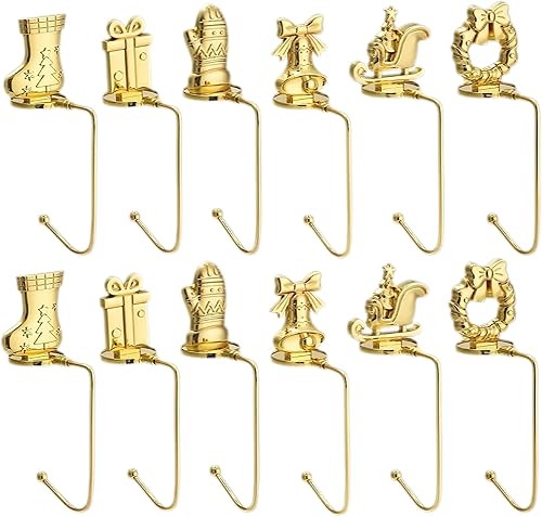 Lot de 6 crochets de chaussettes de Noël en métal doré pour cheminée - Antidérapants et stables - Pour décoration de Noël, fête, maison