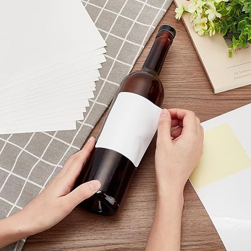 PH PandaHall 120pcs Étiquettes Adhésives pour Bouteilles de Vin 10x8.5cm Étiquette Autocollante Blanche Vierge pour Étiquette de Vin Rectangulaire Imprimable pour Vin, Mariage, Fiançailles