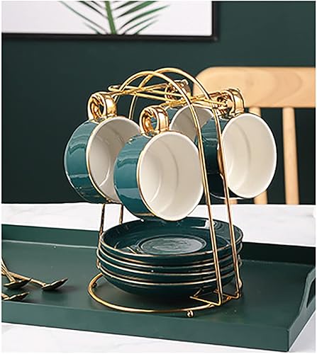 Fosinz Ensemble de présentoirs dorés pour 4 tasses à café, thé et soucoupes