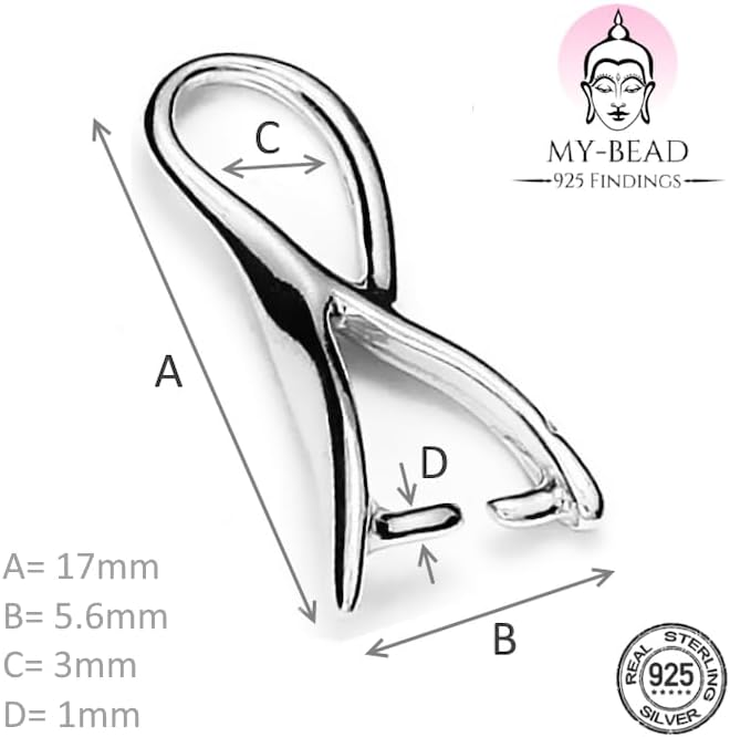 My-Bead 3 pièces Attache Pendentif Boucle 17mm Argent 925 sans Nickel pour la création de Bijoux