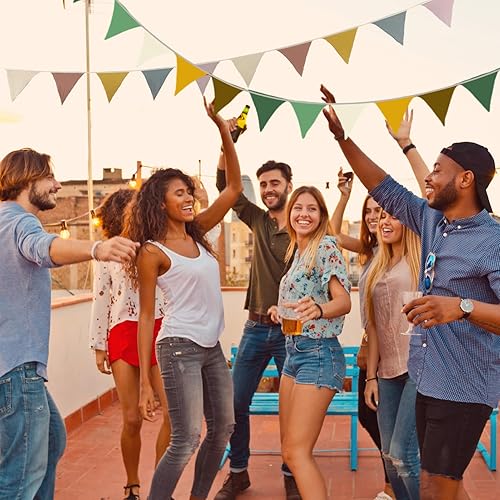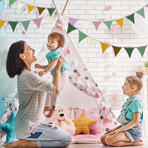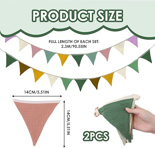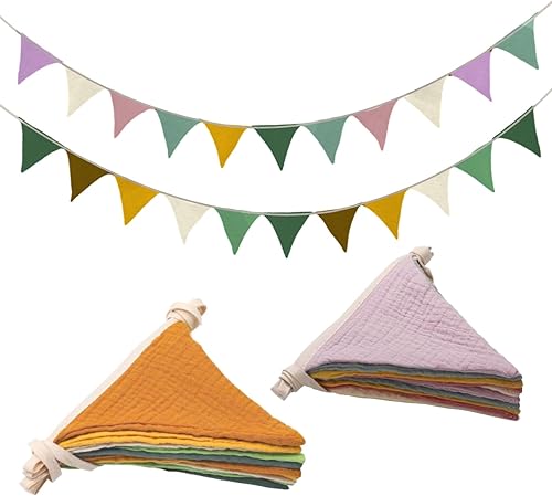 Guirlande de Fanions pour Chambre d'enfant, SRLWMYI 2,6 mètres Coton Bannière de Drapeau Triangulaire en Tissu Guirlande Fanion Décoration Chambre Enfant Chambre bébé à Suspendre Morandi-Green+Beige