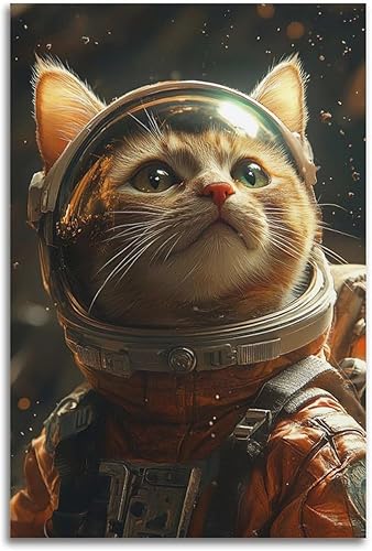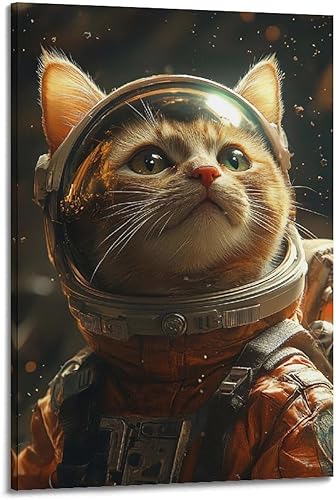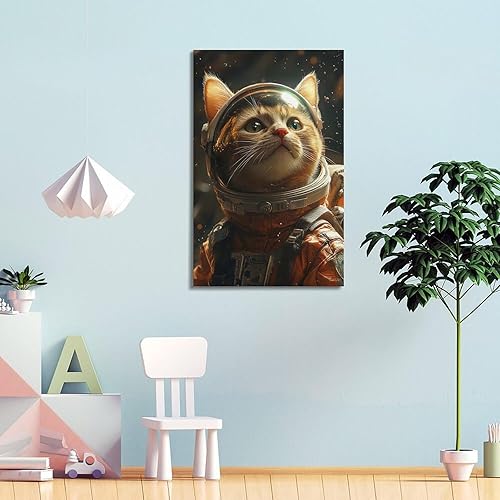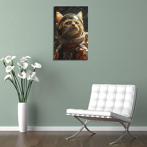 WSSHZXXJ Impression sur toile représentant un chat et astronaute - Décoration murale moderne pour chambre à coucher - 40 x 60 cm