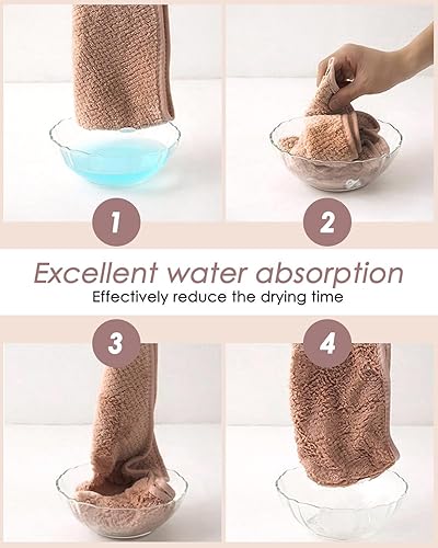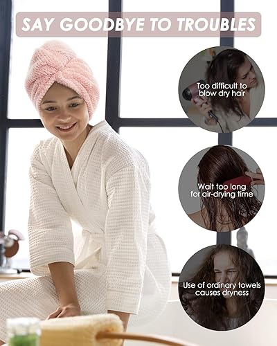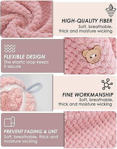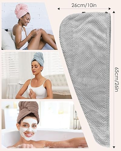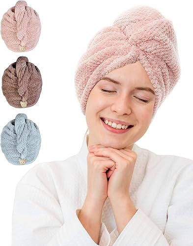 MOXTOYU Lot de 3 Serviettes en Microfibre Super absorbantes pour Cheveux avec Boutons pour Femme et Fille pour Cheveux Longs bouclés et mouillés (Gris/Rose/Vert)