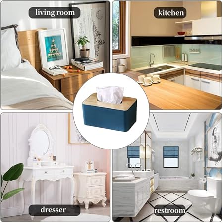 ComResi Porte - Serviettes en Papier, Porte - Serviettes rectangulaires, Porte - Serviettes en Bois,Boite a Mouchoir (Bleu)