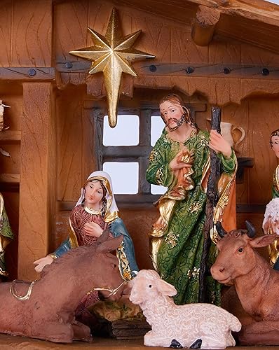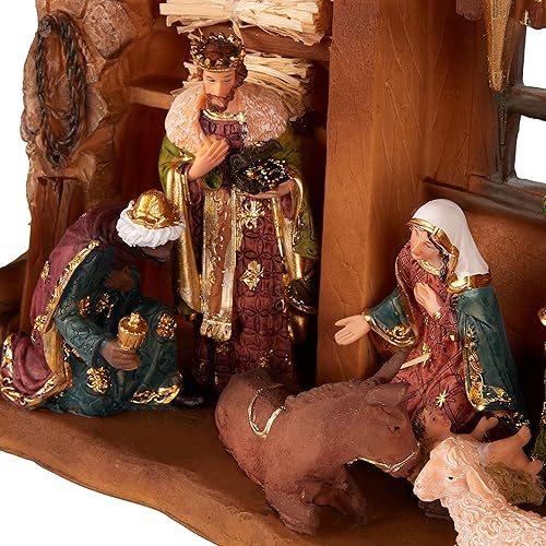 BRUBAKER Crèche de Noël - 40 cm - Figurine de Noël avec figurines peintes à la main Jésus, Marie, Joseph et les rois dans l'étable sous l'étoile - Figurine de crèche - Décoration de table en