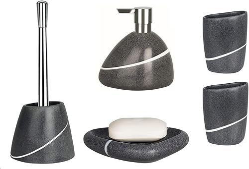 Spirella Set de 5 accessoires de salle de bain en céramique Etna Distributeur de savon WC Brosse à savon Porte-savon et gobelet Gris pierre